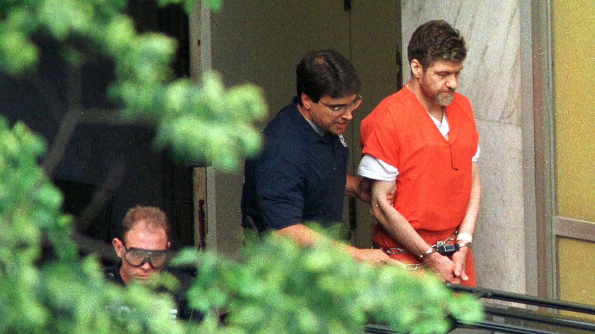 (Photo: Theodore Kaczynski, (R-top), the convicted killer known as the Unabomber, is escorted by US Marshalls outside the Sacramento County Federal Court. Credit: Rich Pedroncelli/AFP/Getty Images)