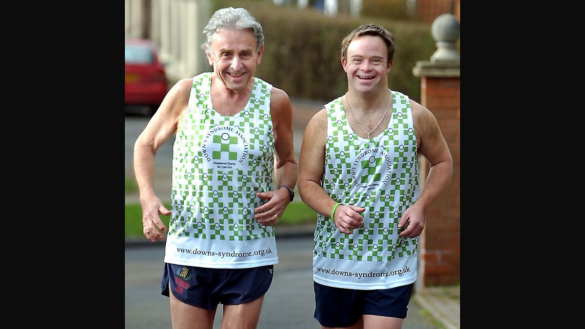 In 2007, Simon Beresford became the first runner with Down's Syndrome to complete the London Marathon. Simon has gone on to run several more marathons and raise tens of thousands of dollars for charity. Rebecca Kesby met Simon, his running partner and his parents at their home in the English Midlands.