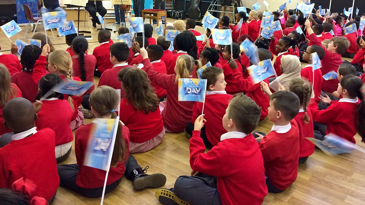 To celebrate BBC Music Day hundreds of schools held their own music assemblies using the BBC's Ten Pieces programme. We hear from one school in south east London, Cardwell Primary in Woolwich, whose pupils had a visit from members of the BBC Concert Orchestra.