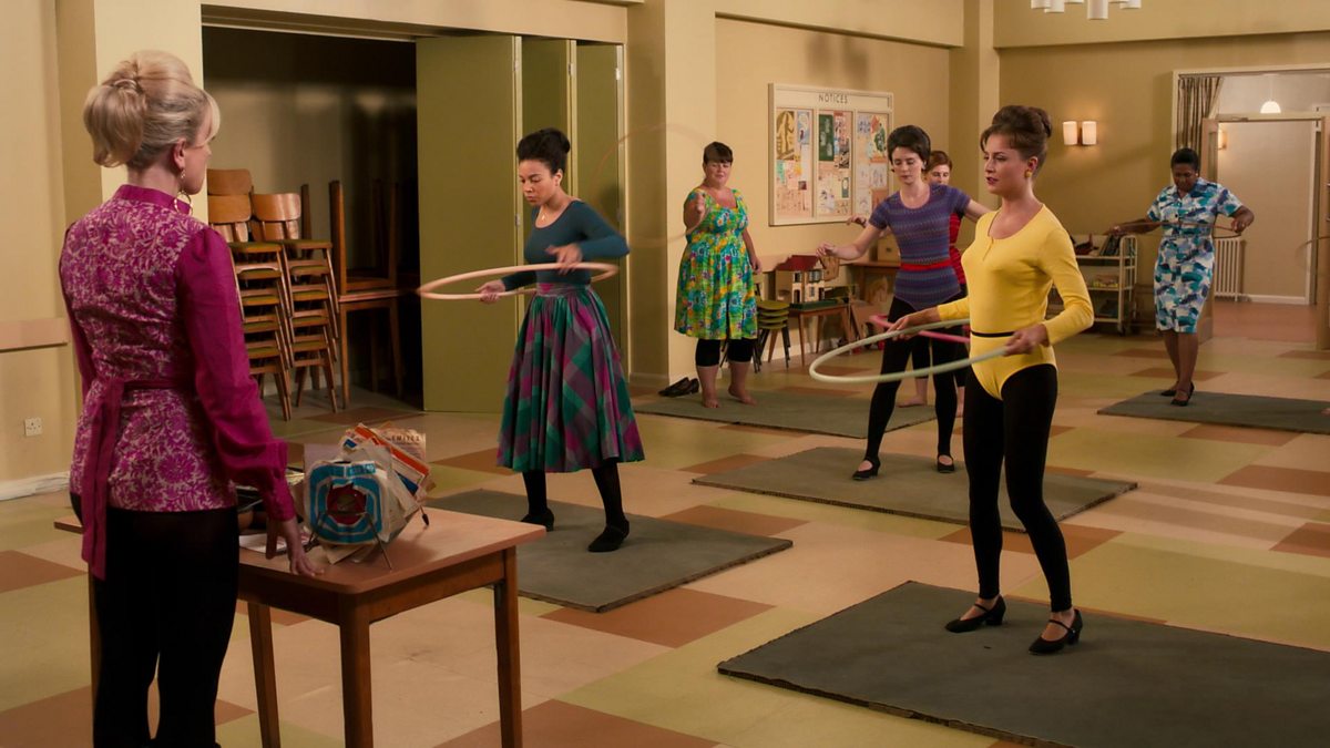 Less than impressed with the nurses' hip movements, Trixie gets another member of the class to demonstrate.