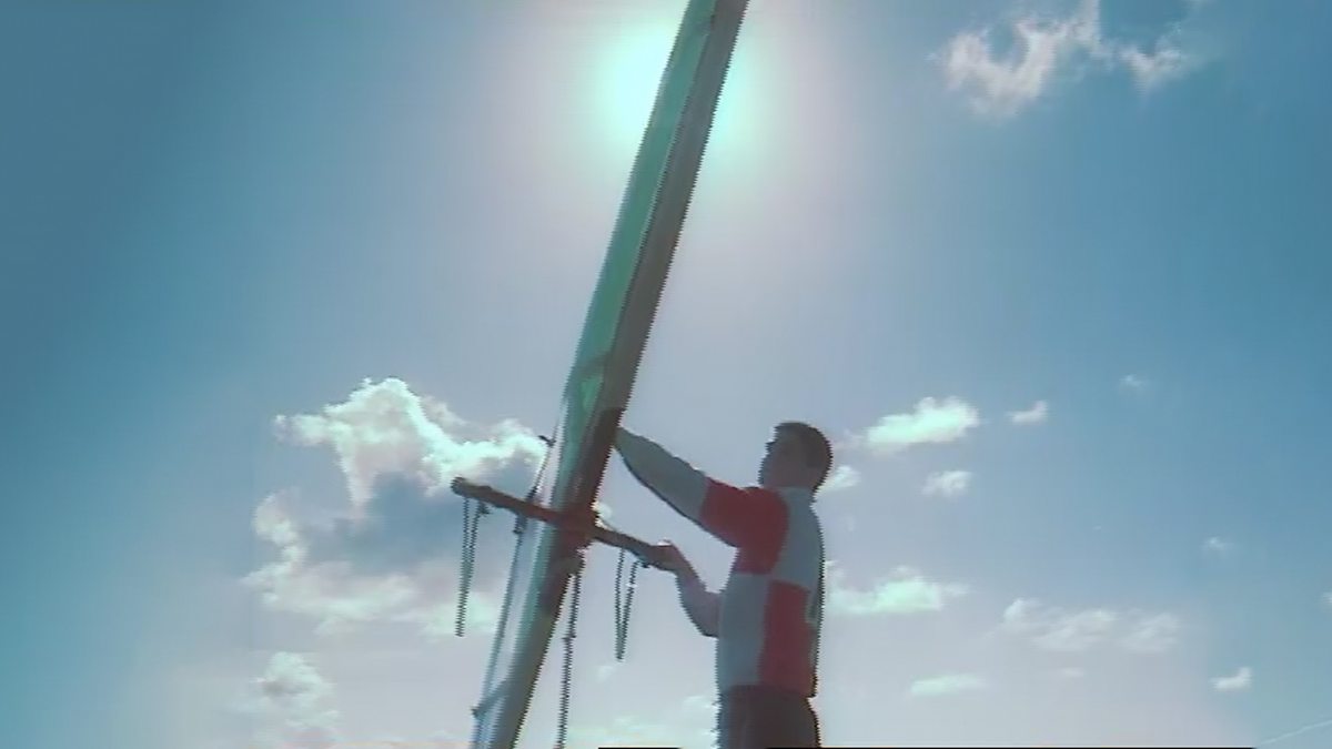 Gwyn Llywelyn sy'n dilyn Eifion Wyn Owen o Chwilog, wrth iddo geisio hwyl-fyrddio o Gymru i Iwerddon. We follow Eifion Wyn Owen as he attempts to sailboard from Wales to Ireland.