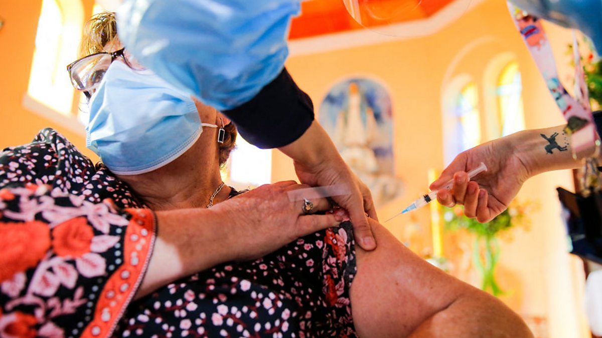 (Image: Woman receives vaccine at the Medalla Milagrosa Church in Valparaiso, Credit: Getty Images.)