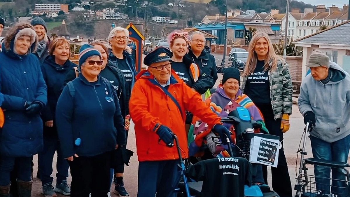 Retired postie walks a mile a day in March aided by his trusty wheeled walker to raise funds for his local Community centre