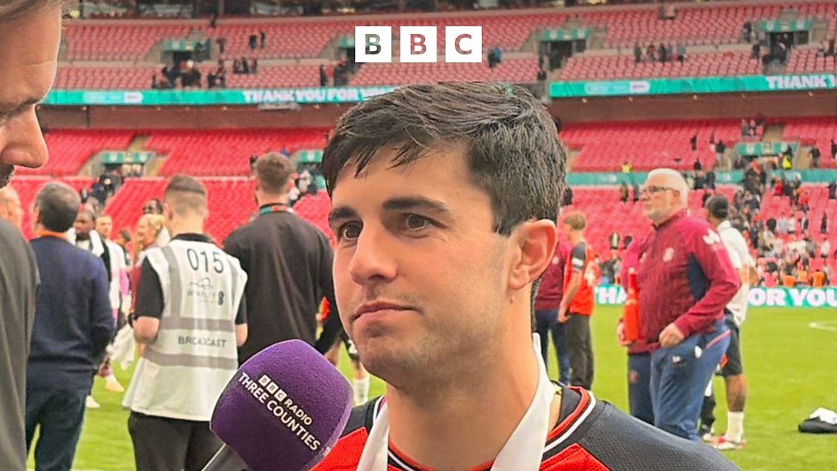 Liam Walsh reacts after Luton win the EFL Trophy 3-1 against Stockport County.