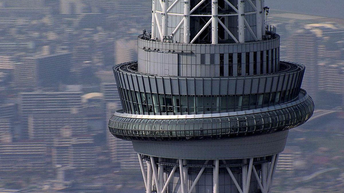 Michael rides to the top of the Tokyo Skytree to take in the views and learn how it was designed to be earthquake-proof.