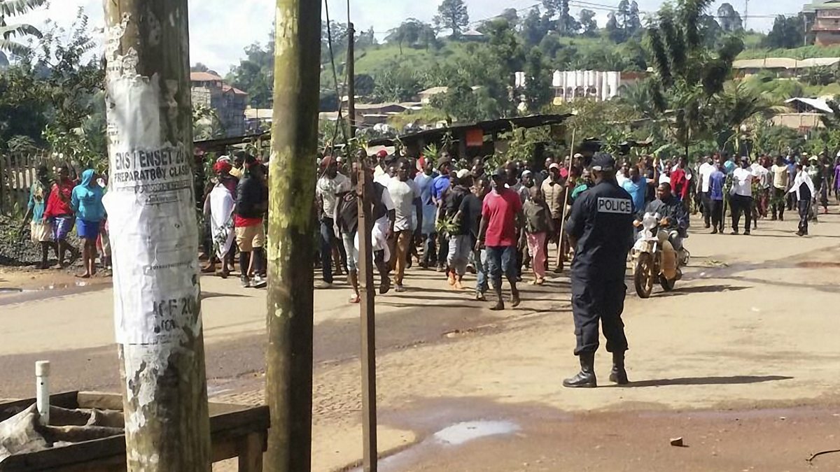Image: Demonstrators in Bamenda, the main town in northwest Cameroon
