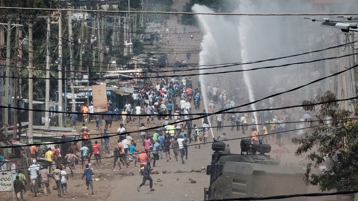 Image: Kenya election protests: crowds protesting on streets, watercannons firing jets