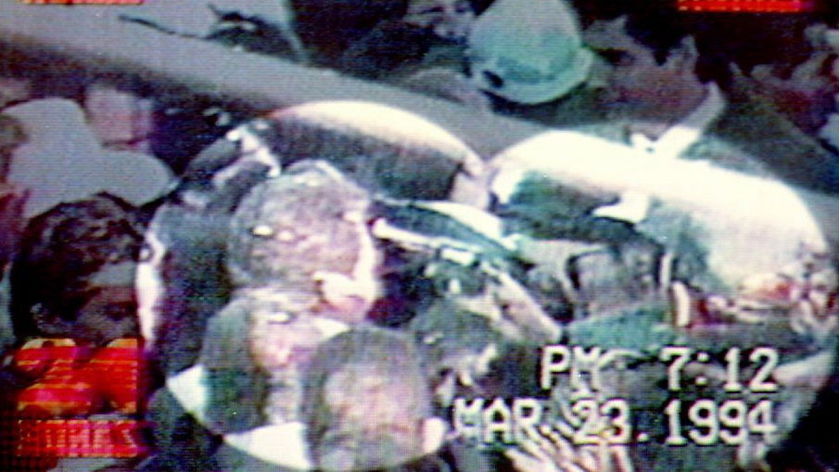 Photo taken from Televisa TV broadcast showing amateur video footage of the moment that Luis Colosio was about to be shot dead during a campaign rally (credit: TELEVISA/AFP/Getty Images)