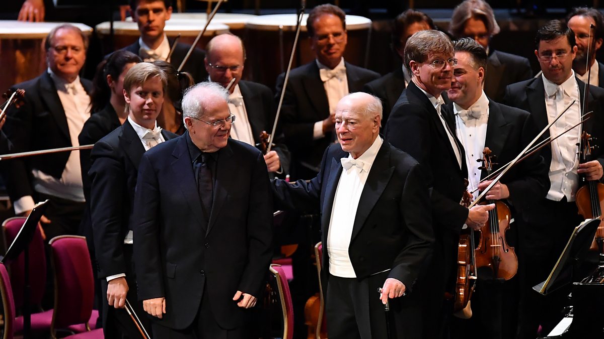 Photo: Emanuel Ax and Bernard Haitink at the 2019 BBC Proms Credit: BBC/Chris Christodoulou