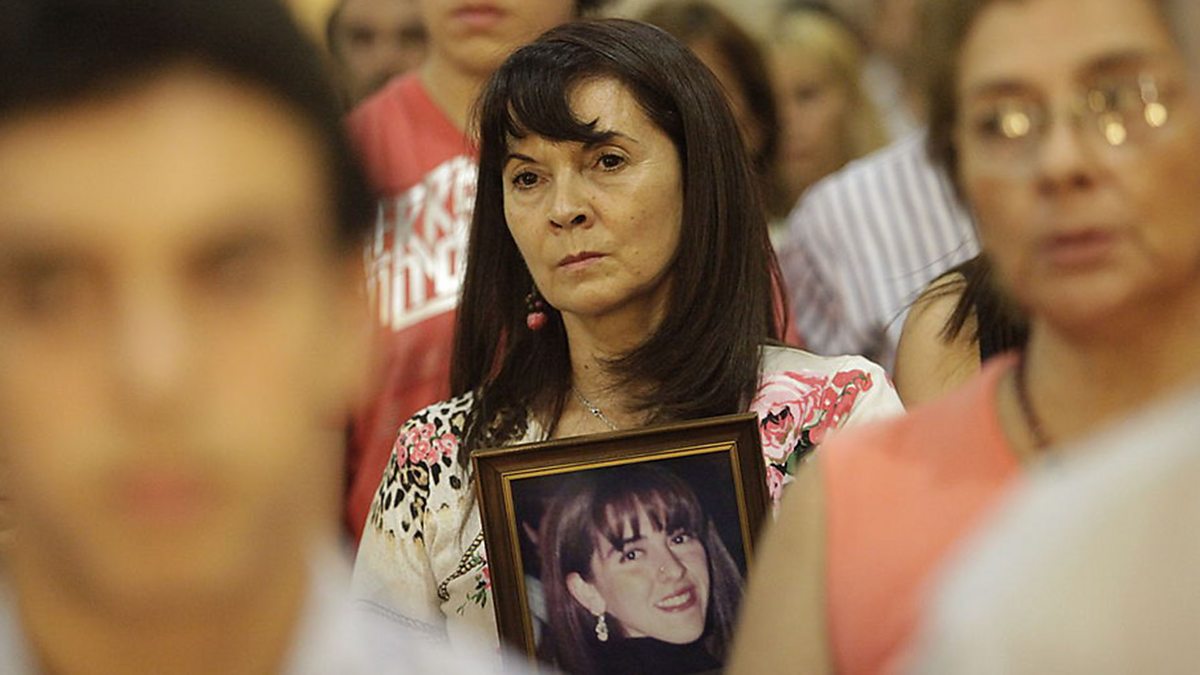 (Photo: Susana Trimarco holding a photograph of her daughter Marita Verón during a mass for her. Credit: Julio Pantoja/Getty Images)