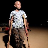 Photo: A child who lost his leg due to artillery shelling by the Rapid Support Forces (RSF), stands at a displacement camp in Al-Dabbah, Sudan. Credit: El Tayeb Siddig/Reuters.