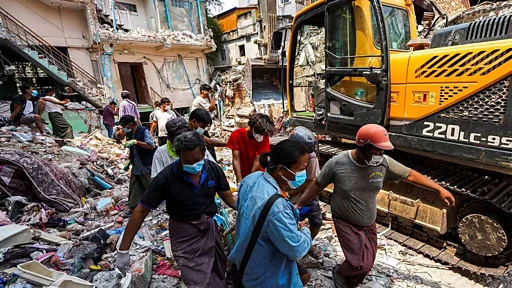 Спасательные работы ведутся с пятницы, и международная помощь уже начала поступать в Мьянму, но в наиболее пострадавшие районы она добирается с задержками, и местные жители пытаются вручную откапывать оказавшихся под завалами.