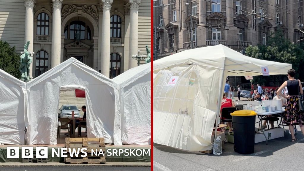 BBC novinari zatekli su grupe ljudi u šatorima ispred Skupštine Srbije 10. juna, ali oni nisu želeli da daju izjave.