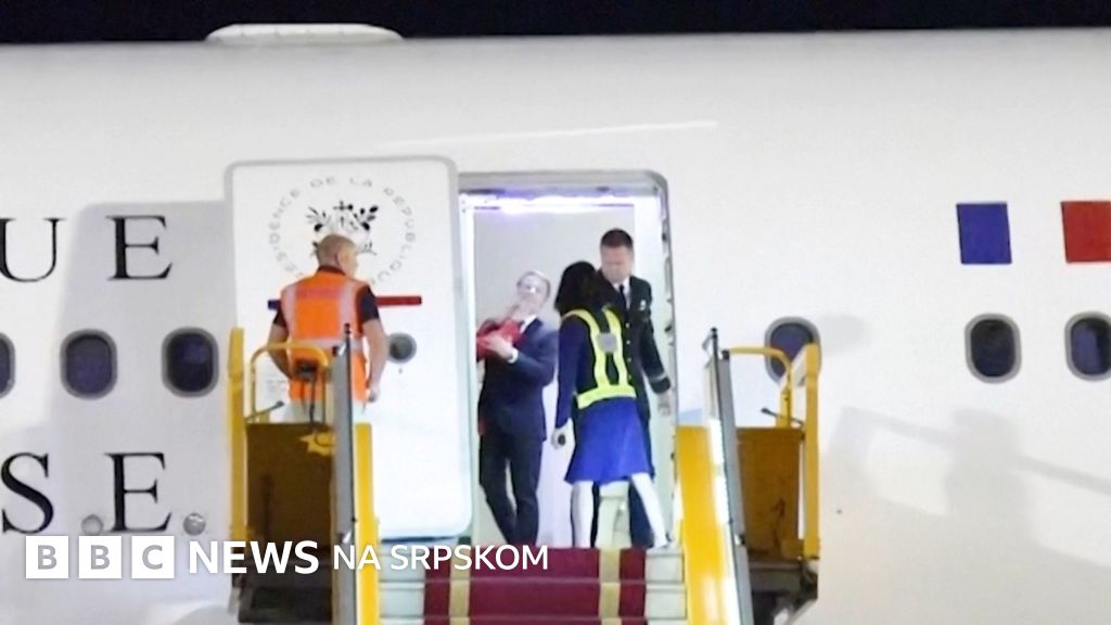 Na snimcima pred izlazak francuskog predsednika Emanuela Makrona iz aviona vidi se kako mu je ruka u crvenom sakou odgurnula lice.