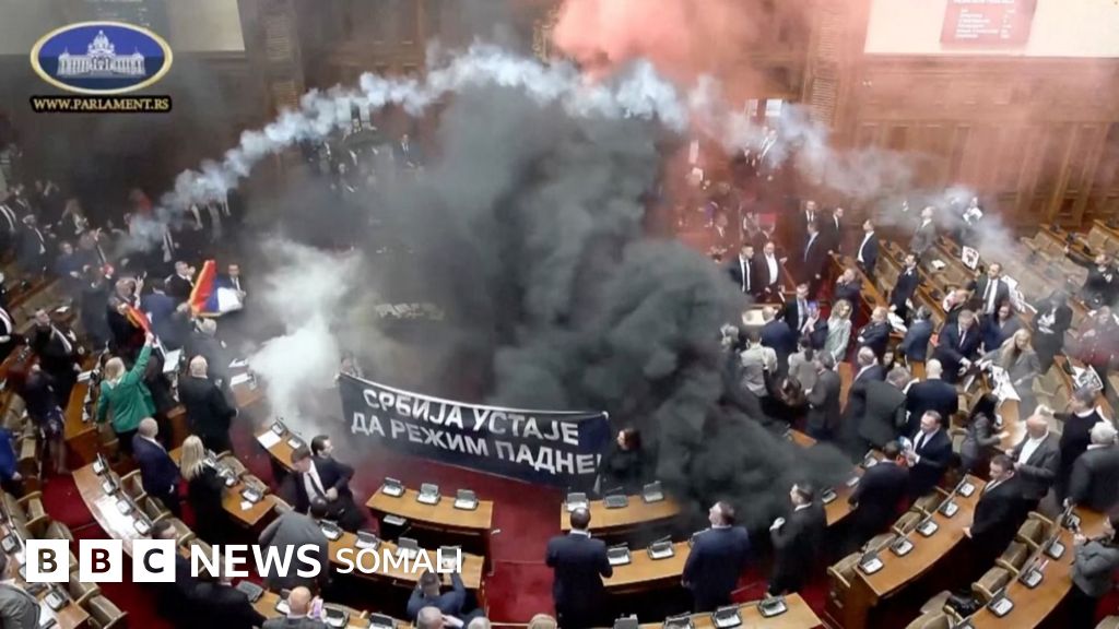 Xildhibaannada mucaaradka ee dalka Serbia ayaa ku tuuray gudaha xarunta baarlamaanka dalkaasi bambooyinka sunta dadka ilmaysiisa, waxayna adeegsadeen sidoo kale buufin ka sameysan basbaas Talaadadii shalay, si ay u muujiyaan taageerada ay u hayaan mudaharaad dowladda looga soo horjeedo oo ay dhigayaan arday, iyadoo mid ka mid ah xubnaha sharci-dejinta uu ku dhacay xanuunka faaligga.