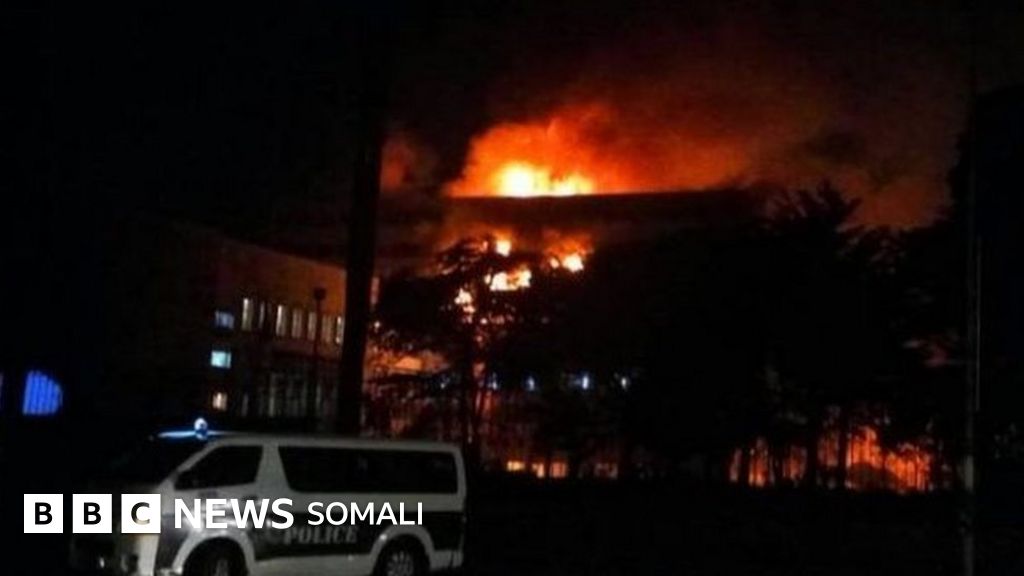 Sawirro iyo muuqaal la soo dhigay baraha bulshada ayaa muujinaya dabaqyada sare oo gubanaya, saacado ka dib markii dambu qabsaday.