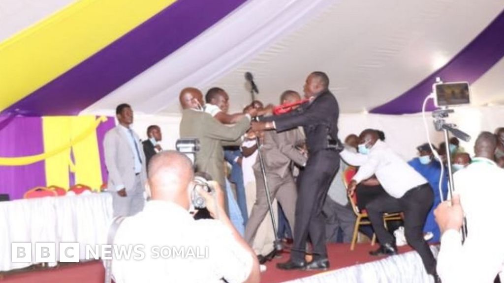 Muuqaal la baahiyay ayaa muujinaya labada xildhibaan oo dagaalamaya isla markaana ay ciidamada ammaanka iyo xildhibaano kale kala jiidayaan.
