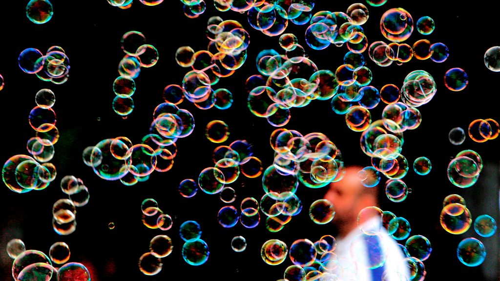 Fragile gas filled spheres, sparkling champagne globules that fill your nose with fizz, pipe dreams that pop when the illusion grows too big: Bridget Kendall explores the mysterious world of bubbles with physicist Helen Czerski, biomedical engineer Constantin Coussios and artist Bradley Hart who makes giant paintings using bubble wrap. Photo credit: Associated Press