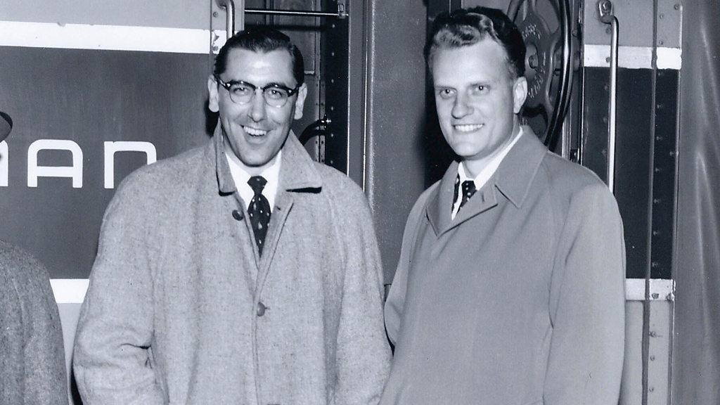 As we approach Christmas we look back at the turning point in the career of the world's most famous evangelist - Billy Graham. He's preached the gospel to more people in live audiences than anyone else in history - more than 200 million around the world - and it all began in north London in 1954. Claire Bowes has been speaking to the man who Mr Graham describes as the architect of international evangelism. PHOTO: Jerry Beavan and Billy Graham in the 1950s.