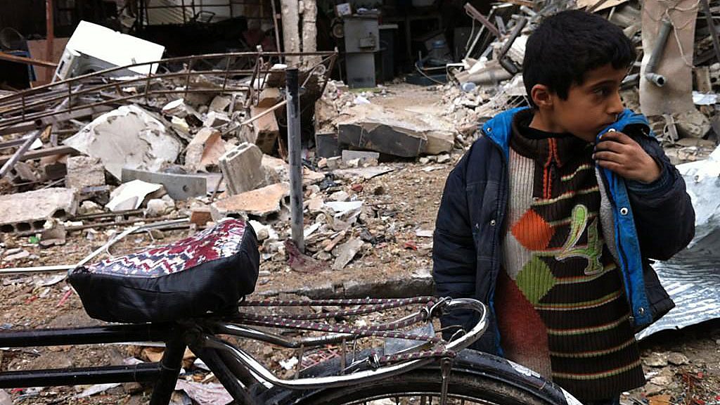 Lina Sinjab, the BBC’s Damascus correspondent, has reported for the World Service as the Syrian conflict progressed. But how has it changed her home city – and how has it changed her? In this intimate, revealing programme, she combines dramatic scenes and interview material with a personal audio diary as she discusses her thoughts, feelings and encounters. She meets a 14-year-old boy who’s volunteered to become a medical worker; she sees a young boy hitting a doll which he’s named after an opposition leader; she watches black smoke from explosions bloom across the city from the window of her apartment. She has flashbacks of an old man killed by a sniper and seeks refuge in listening to her favourite music. She joins a bizarre rooftop barbecue, as friends party and try to push the thoughts of conflict away and finally she leaves her beloved country, with thoughts of her friends and family who she has left behind echoing in her mind. “Every minute will stay in my mind and heart,” she concludes. “I’m not sure if and when I’ll be back.” (Image: A boy stands outside a destroyed house in Douma, Damascus suburbs. Credit: Lina Sinjab)