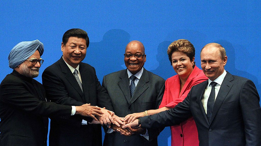 When Jim O'Neill of Goldman Sachs first coined the acronym BRICS to describe the rapidly growing economies of Brazil, Russia, India, China and South Africa they were great engines of economic growth in the world. Not any more. Today Business Daily asks Mr O'Neill what he thinks has gone wrong. Plus Lucy Kellaway of the Financial Times on why you can ignore the old lie about not judging a book by its cover - looks really do matter in the workplace. (Image: From left, India prime minister Manmohan Singh, President of the People's Republic of China Xi Jinping, South Africa president Jacob Zuma, Brazil president Dilma Rousseff and Russian Federation president Vladimir Putin. Credit: AFP/Getty Images)