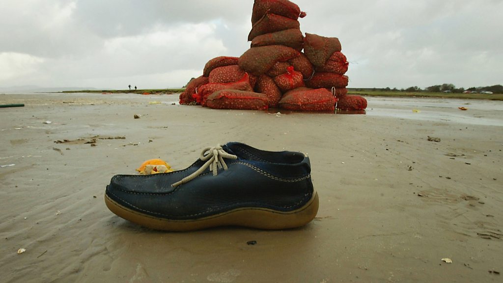 In February 2004, 23 Chinese immigrants drowned while picking shellfish in Morecambe Bay, off the coast of north-west England. Witness speaks to two of the people who helped with the rescue operation. (Photo: A lone shoe and haul of cockles on the beach in Morecambe Bay where the Chinese cockle pickers lost their lives. Credit: Chris Furlong/Getty Images)