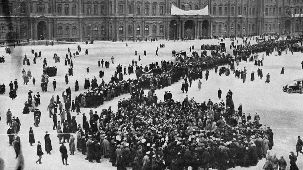 On 7 November 1917 Lenin and his Bolshevik party overthrew the Provisional Government led by Alexander Kerensky. Dina Newman presents Kerensky's comments from the BBC archive. (Photo: Demonstrators gather in front of the Winter Palace in Petrograd, formerly St Petersburg, during the 1917 Russian Revolution. Credit: Hulton Archive/Getty Images)