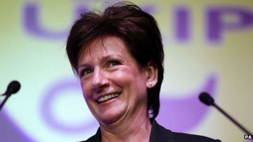UKIP MEP Diane James says she is "absolutely astonished" by a call from party colleague Douglas Carswell MP for NIgel Farage to quit as leader. "I do wonder at his motives, yes - I mean he's come from the Conservatives," she told World at One presenter Shaun Ley.