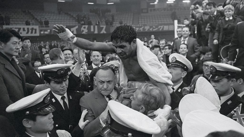 In February 1968, the aboriginal fighter Lionel Rose was cheered by Australians of all races when he won the world bantamweight boxing title. Ashley Byrne talks to Rose's rival and later friend, Noel Kunde. The programme is a Made-In-Manchester Production. PHOTO: Lionel Rose celebrating his world championship victory in 1968 (Getty Images)