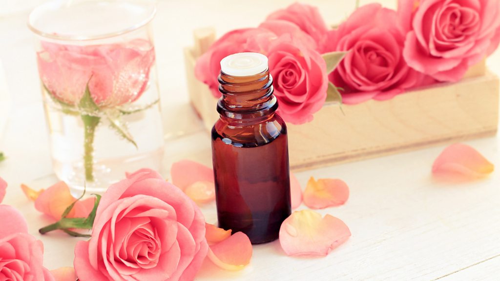 Popular scents in perfume, like rose, can be extracted in different ways - though they can be expensive to develop. Stéphanie Bakouche, who owns her own perfume laboratory in France, explains how cheaper synthetic bases that mimic natural scents have been fabricated by chemists for over a century. (Image: Perfume bottle and roses, Credit: Getty Images.)