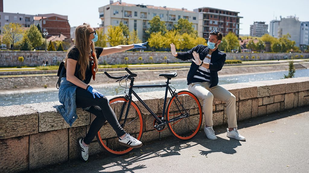 Dr Holger Schünemann, co-director of the World Health Organization's Collaborating Centre for Infectious Diseases, discusses the latest health advice on social distancing. He also takes a look at how the risks vary depending on where you and the virus are in the world. (Image: A boy and girl social distance with a bike between them Credit: Getty Images)