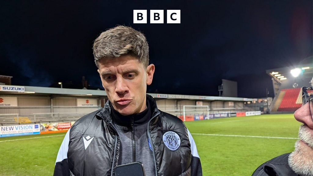 Alex Revell reacts after Stevenage lose 3-0 against Exeter City. Image: BBC