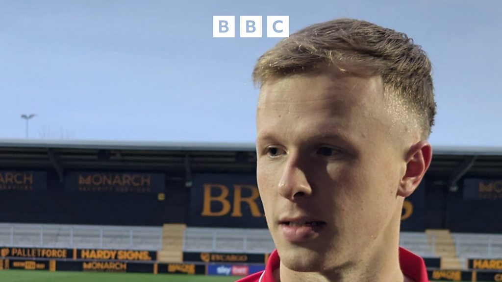 Filip Marschall reacts after Stevenage win 1-0 away to Burton Abion. Image: BBC
