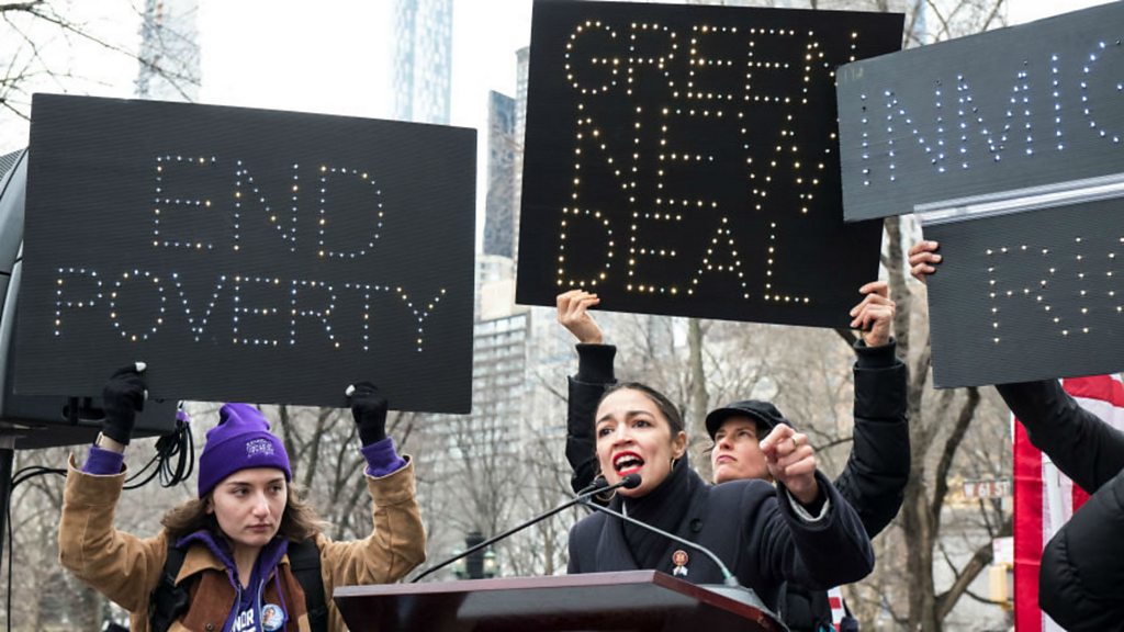 As the warnings around the risks of climate change increase, some in the left, led by US democrat Alexandria Ocasio-Cortez, are trumpeting an economic solution called the Green New Deal. The idea is that a massive public injection of money could fix the shortfall in green tech in the US, turn America into a zero-emissions economy and tackle poverty all at the same time. But how would such a plan work? Do the numbers add up or is it just fantasy economics? Joining Ed Butler to discuss this are Ellen Brown, author and activist and the founder and chair of the Public Banking Institute, a nonpartisan think tank devoted to the creation of publicly run bank; Alex Douglas, a lecturer in philosophy at the University of St Andrews and the author of the book, The Philosophy of Debt; and George Selgin, director of the Center for Monetary and Financial Alternatives at The Cato Institute in Washington DC. (Image: Alexandria Ocasio-Cortez addressing a crowd. Credit: Getty images)