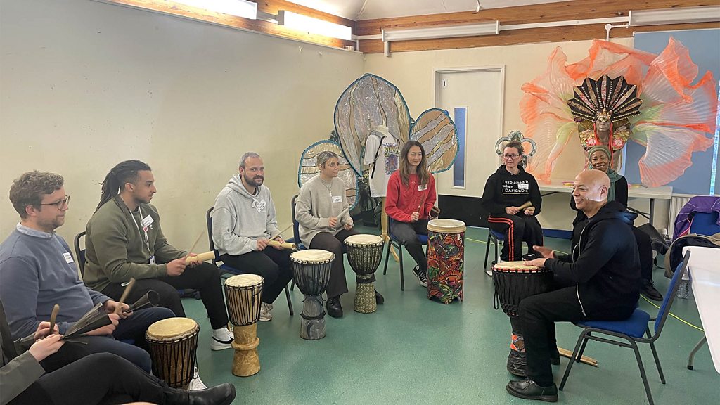 Since early times, the drum has been part of human society. But have you ever considered how drumming might actually improve our physical and mental health? Researchers from the University of Essex are at this year’s annual Royal Society’s Summer Exhibition in London to talk to the public about their work which shows drumming during a rock concert might give you a similar workout as playing football. Along with the BBC’s health and science correspondent, James Gallagher, Claudia Hammond gets a drumming lesson. They also hear how specially designed audio is being used in virtual reality gaming to train the brains of people with hearing impairments. How micro-robots may provide the future of intricate eye surgery. And how laser technology currently being deployed by the Mars Rover could revolutionise the way we screen our bodies for diseases. Presenter: Claudia Hammond Producer: Erika Wright (Photo: Drumming workshop plus drumming teacher Richard Davis)