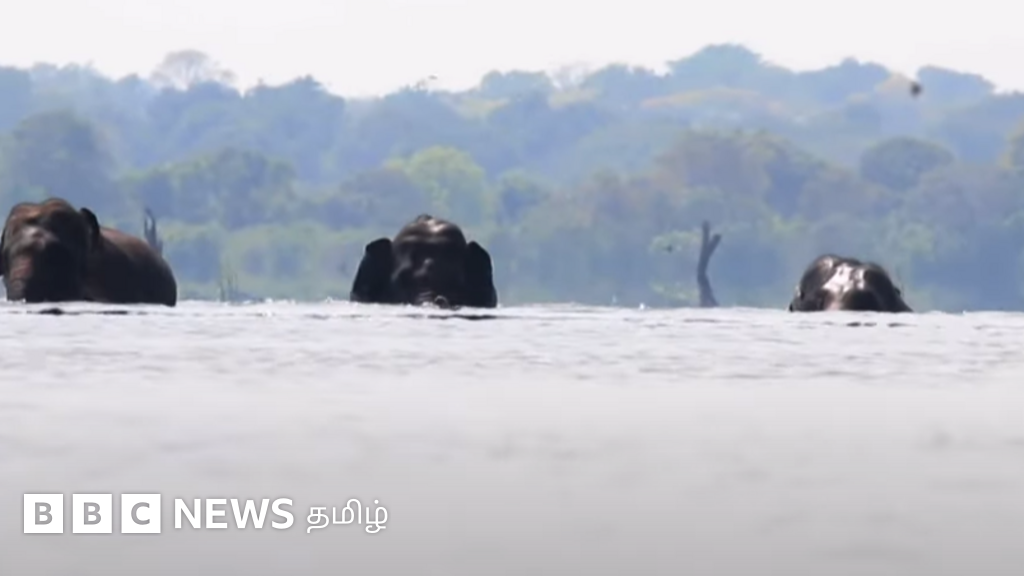 வடக்கு இலங்கையில் உள்ள நீர்த் தேக்கம் ஒன்றில் யானை கூட்டம் நீந்திச் செல்லும் காட்சி வெளியாகியுள்ளது.