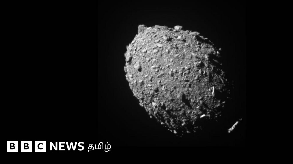 படக்குறிப்பு, மோதுவதற்கு முன்னர் டார்ட் விண்கலத்தால் எடுக்கப்பட்ட டிமார்போஸ் சிறுகோளின் படம்.