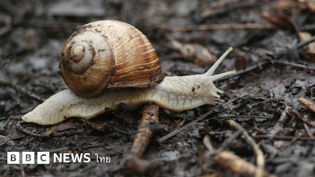 “หอยทากจะหลั่งเมือกเมื่อถูกรบกวน”