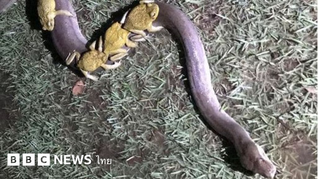 พบคางคกต้นอ้อย (cane toad) 10 ตัวขี่หลังงูเหลือมตัวหนึ่งในออสเตรเลีย