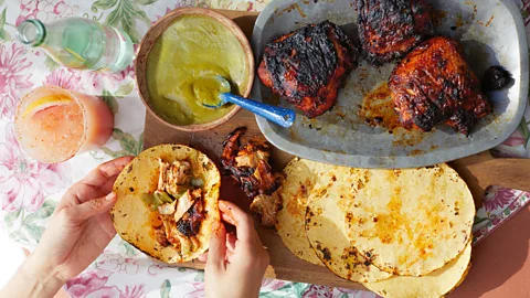 Cookbook author Bricia Lopez's smoky marinated chicken gets flavour from chillies, citrus and spices and pairs perfectly with a spicy beer-based michelada cocktail.