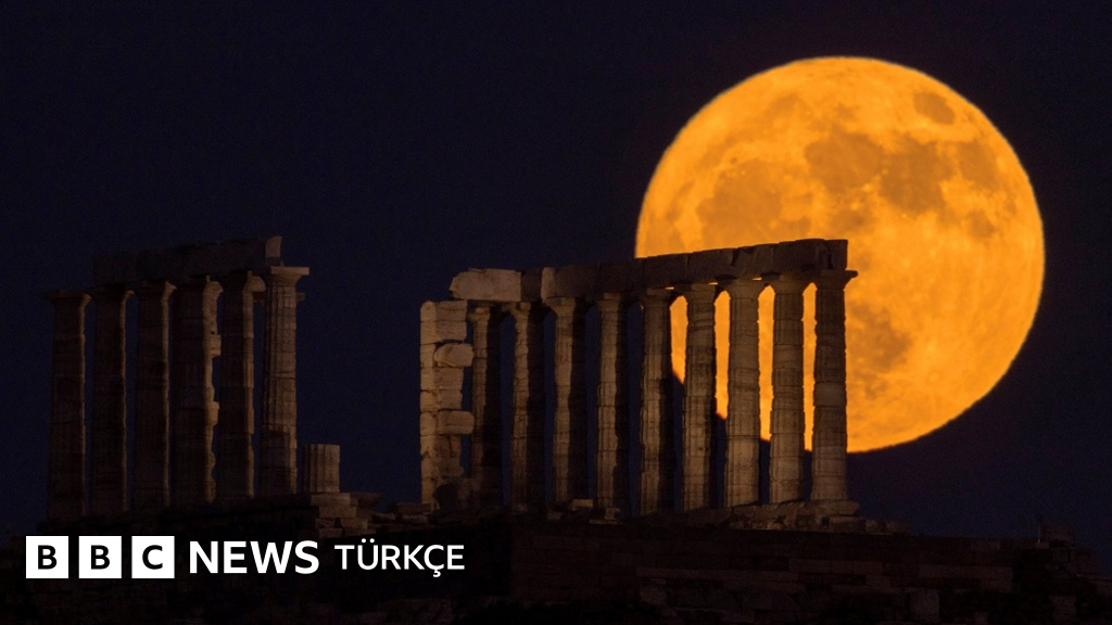 “Çilek dolunayı” olarak da bilinen Haziran dolunayı, Yunanistan’ın güneyindeki Poseidon Tapınağı'nda da görüntülendi.