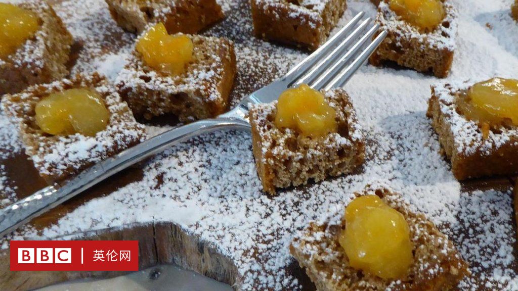 "現在我們來兩塊'稍息糕點',"賈斯伯說。"'稍息'意為用較清淡的糕點加以緩和,然後重返更重油的軟糕點。薑餅小人是加了蜂蜜的甜味薑餅配甜煮杏——香料糕點是添加香料的原味糕點。"