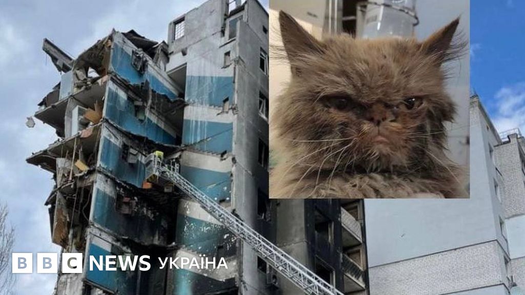 У Бородянці на Київщині врятували кішку. Тварину зняли з сьомого поверху зруйнованої багатоповерхівки.