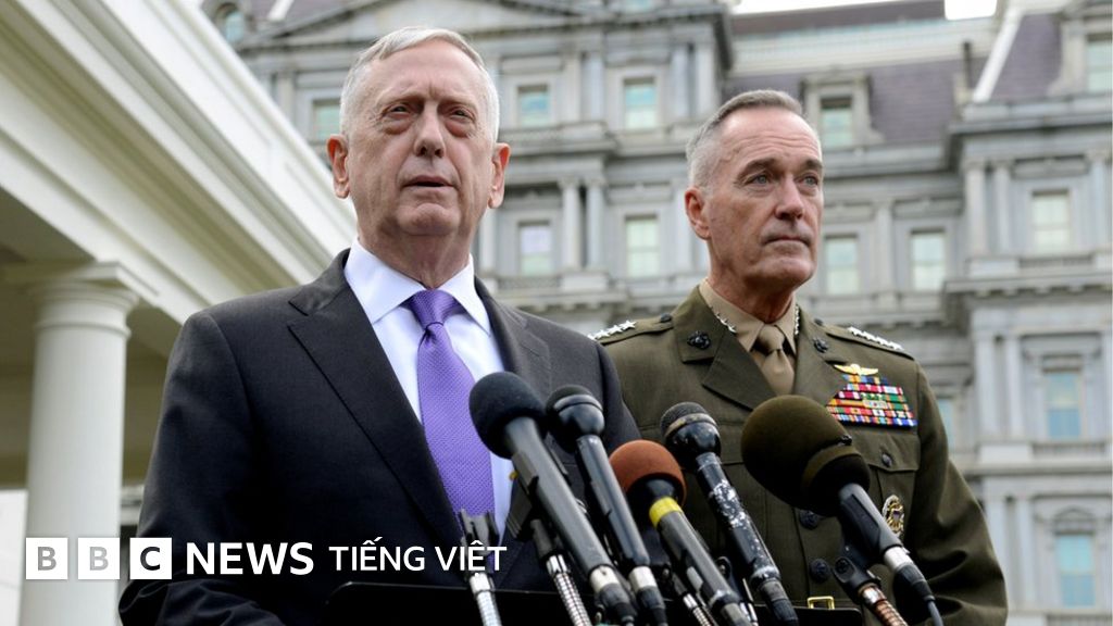 Chụp lại hình ảnh, Bộ trưởng Quốc Phòng Hoa Kỳ James Mattis (trái) nói phản ứng quân sự của Hoa Kỳ sẽ "hiệu quả và mãnh liệt"